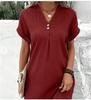 Elegant Two Buttons Decoration V Neck Pullover Dresses Women Solid Color Short Sleeve Dress Summer Female Daily Casual Mini Gown — buy online with free worldwide shipping!