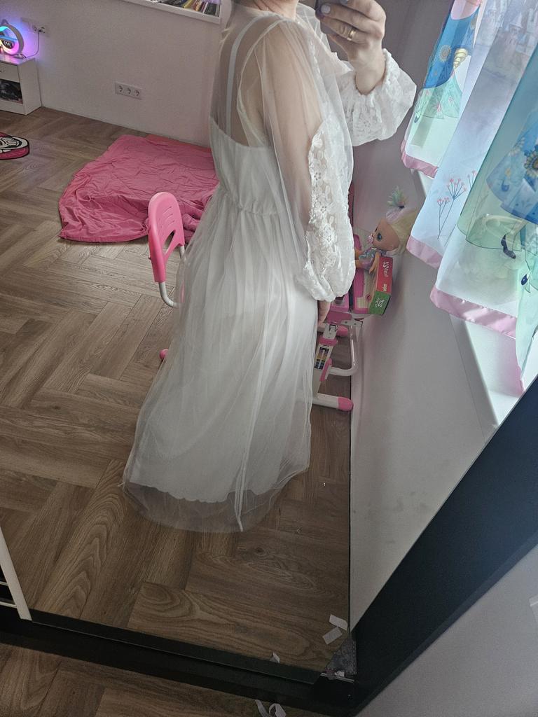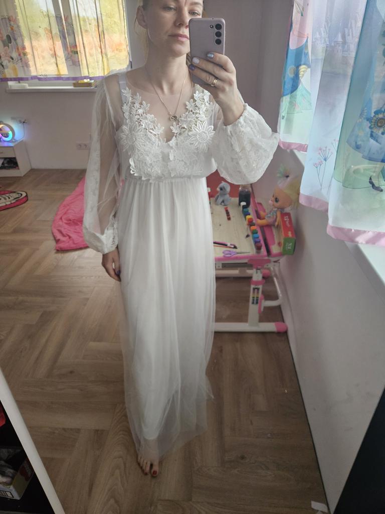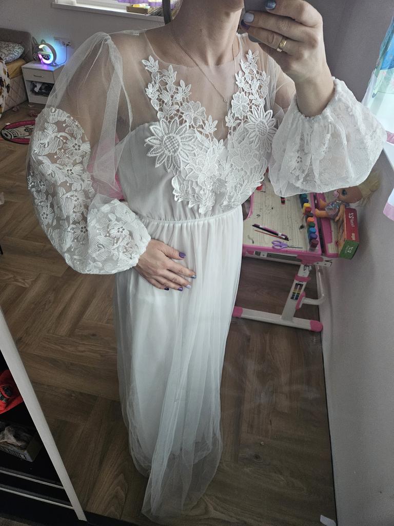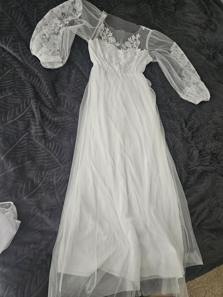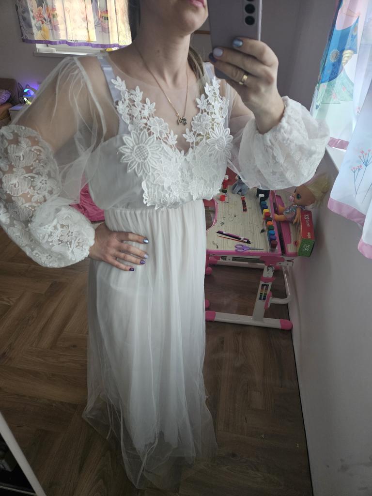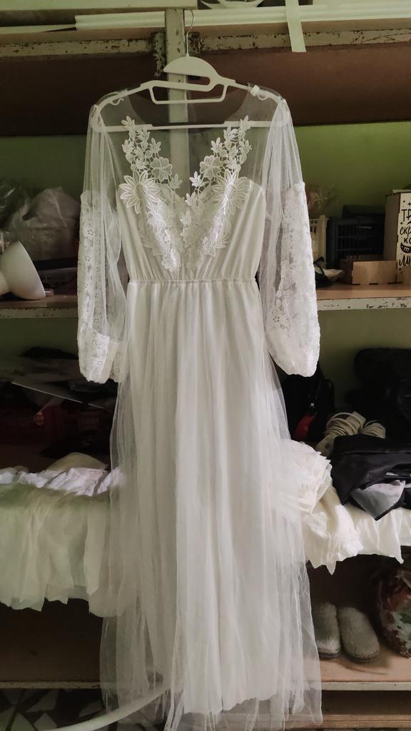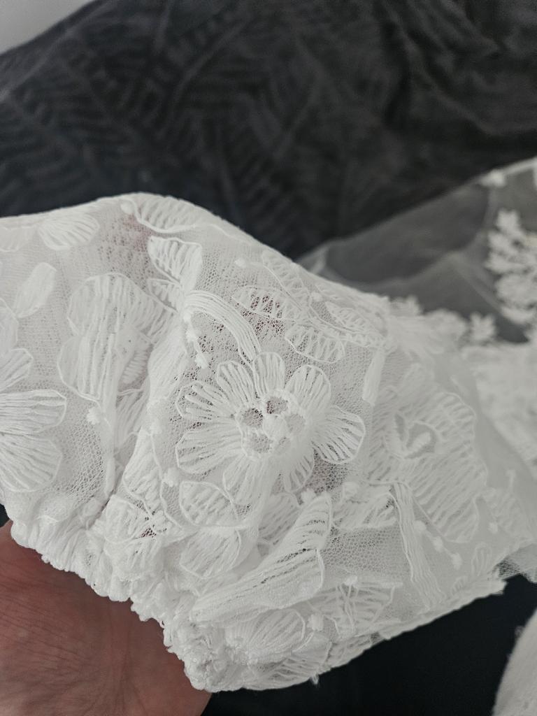 2020 New Embroidered Mesh Puff Sleeve Round Neck Wedding Dress