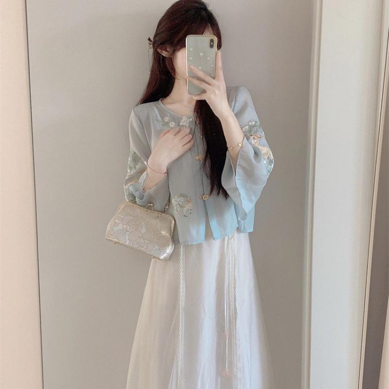 Elegant Embroidered Women's Two-Piece Summer Suit with Top & Skirt
