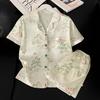 2025 Summer Short Sleeve Tops and Shorts Pajamas for Wome N Korean 2 Piece Set Silk Fashion Sleepwear Elegant Print Satin Pajama Set Young Girl