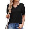 Spring and Summer Women's Solid Colour V-Neck Lace Splicing Short Sleeve Loose T-Shirt