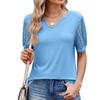 Spring and Summer Women's Solid Colour V-Neck Lace Splicing Short Sleeve Loose T-Shirt — buy online with free worldwide shipping!