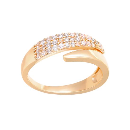 This elegant finger ring is the perfect gift for your loved one. Its versatile style allows for stacking with other rings to create unique looks. Crafted in golden with an open design adorned with sparkling zircons, this ring exudes luxury.