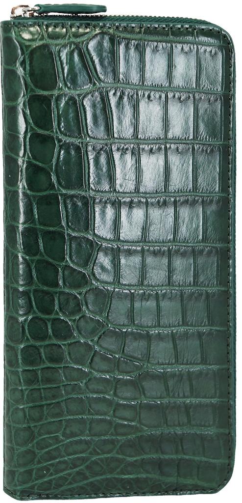 A round zipper wallet with a crocodile matte finish that is soft to the touch and easy to use.