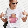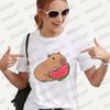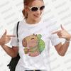 Cute Capybara Anime Women's T-shirt Casual Ulzzang Short Sleeve Tees Cartoon Graphic Y2K Tops Female Blouse Aesthetic Clothing