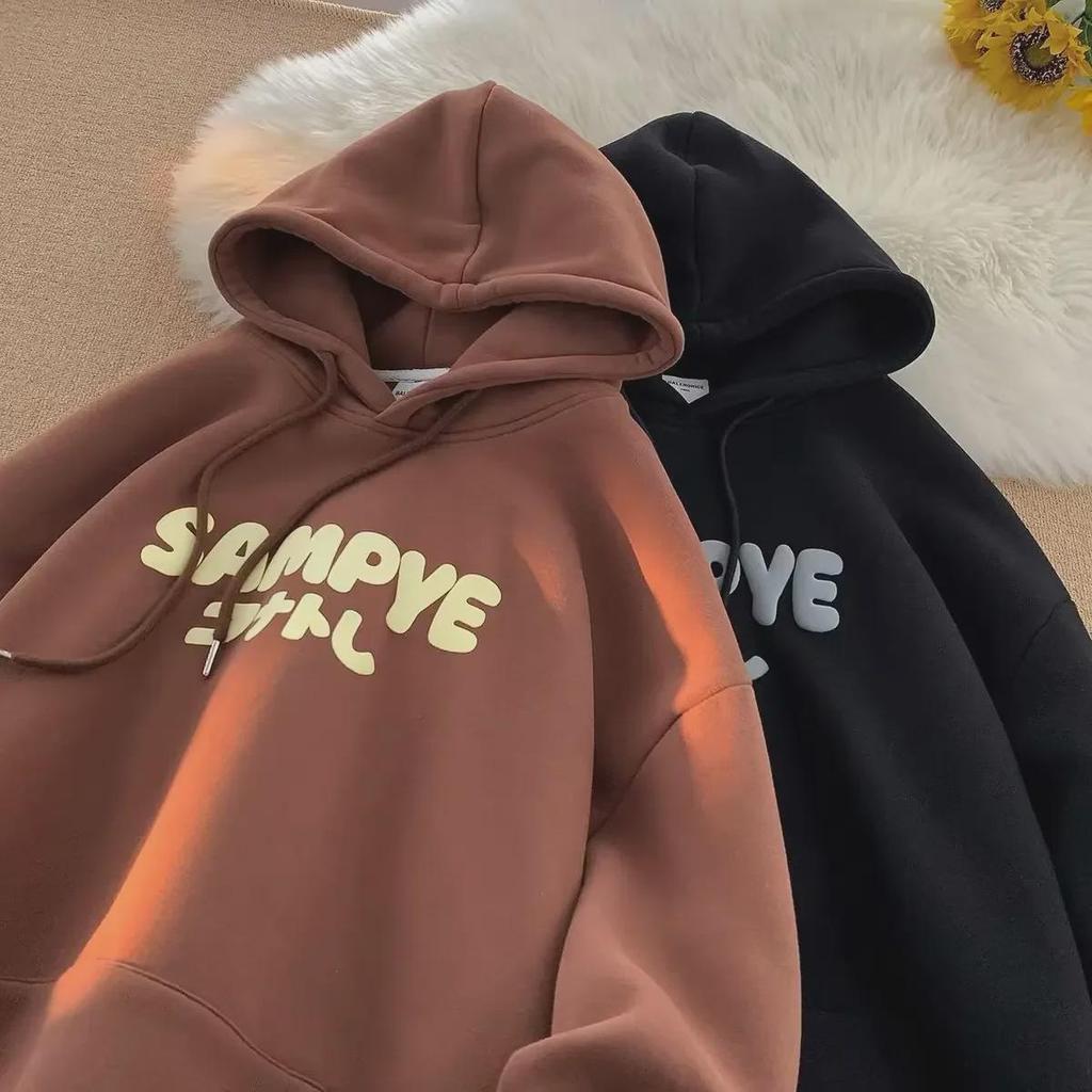 Elevate your wardrobe with this stylish unisex American retro velvet hoodie, perfect for both spring and autumn 2023. Designed with a trendy oversized fit, this hoodie features a stand neckline and long sleeves for a modern yet comfortable look. Crafted from high-quality polyester material and lined with soft polyester fur, it ensures both warmth and durability. Adorned with a unique print decoration, this hoodie effortlessly combines vintage charm with contemporary flair, making it a must-have addition to any fashion-forward collection.