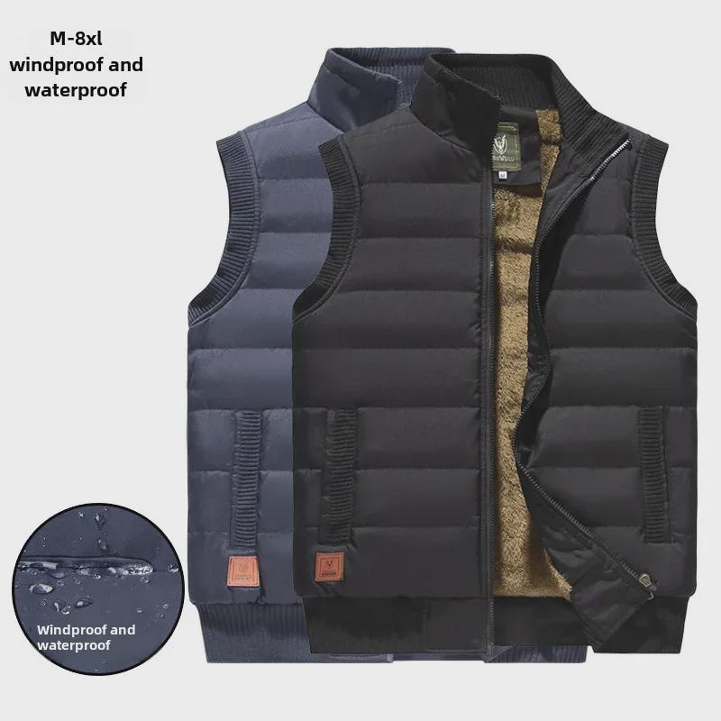 Men's Waterproof Thickened Velvet Stand-Up Collar Windproof Vest, Loose Fit for Dad, Large Size Warm Waistcoat — buy online with free worldwide shipping!