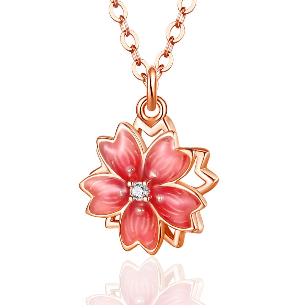 "Product Specifications" Chain length: 40cm+5cm, Peach blossom size: 1.1*1.1cm, Material: Made of 925 silver, enamel, synthetic cubic zirconia, Color: Pink Gold