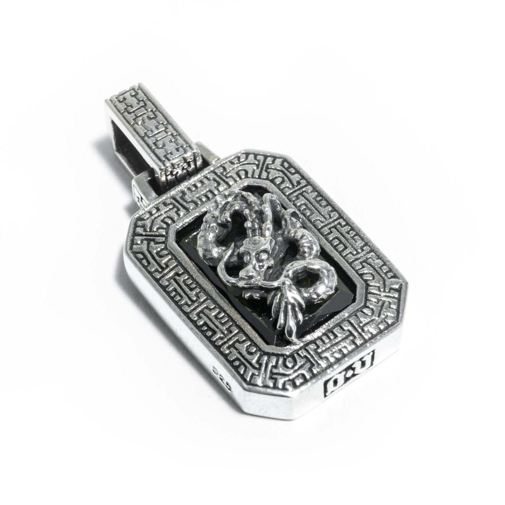 Description: Silver dragon pendant, symbol of good luck and authority.