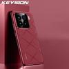 KEYSION Grid Pattern PU Leather Case for Xiaomi 15 5G Plating PC Camera Lens Protection Phone Back Cover for Xiaomi 15 Pro 5G