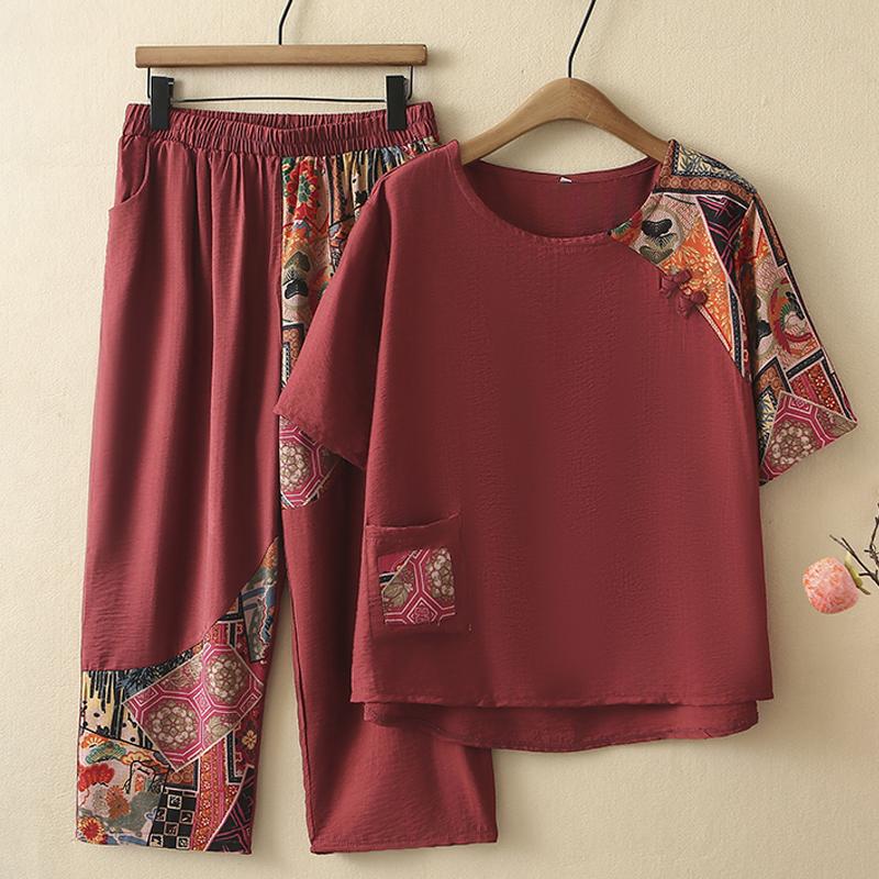 Plus Size 3XL-8XL Women's Two Pieces Set Summer Vintage Clothing Elegant Oversize Pants Sets — buy products online with free worldwide shipping!