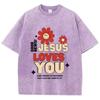 Woman Cotton Washed T-Shirts Good News Jesus Loves You Letter Graphic Print Short Sleeve Loose O-Neck Tops Summer Female Clothes