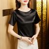 Satin Women Blouse T-shirt Skew Collar Blouses Summer Short Sleeve Womens Tops Solid Elegant Women Clothing OL Shirts for Women