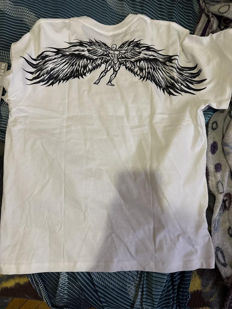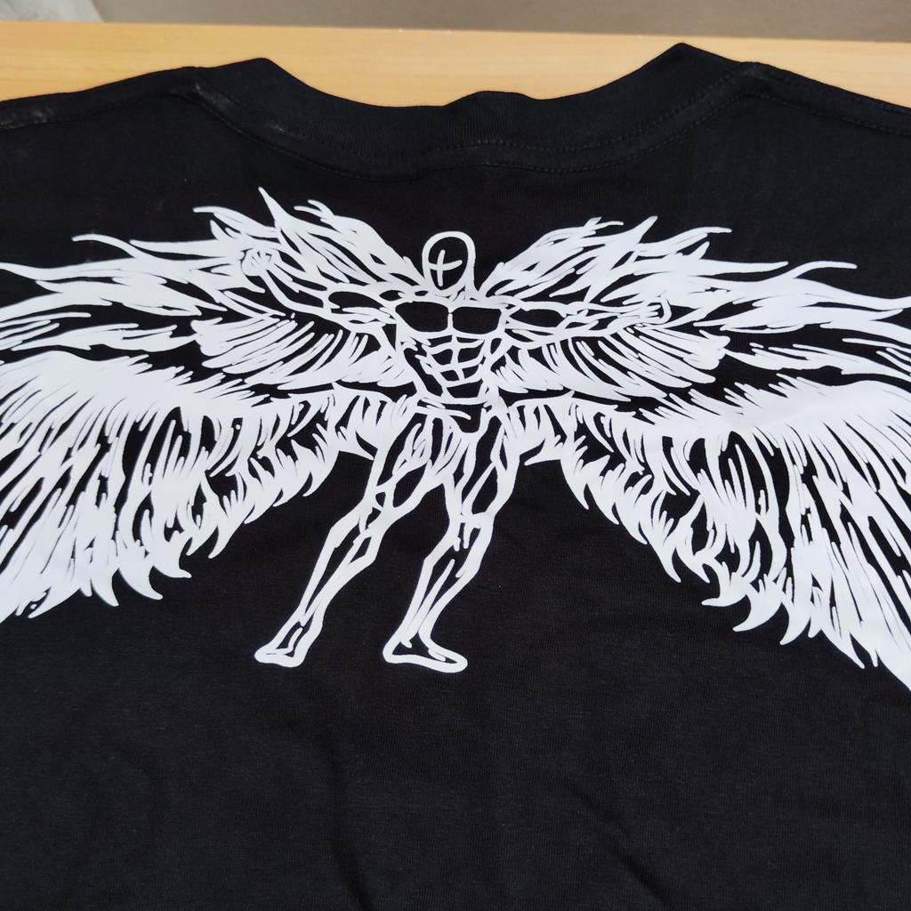 T-shirt for men The shirt has a round neck and is printed with a figure with large wings.! The Harajuku style men's hip hop t-shirt with short sleeves It is possible to order in several different sizes The product arrived to me with fast and secure delivery 📦