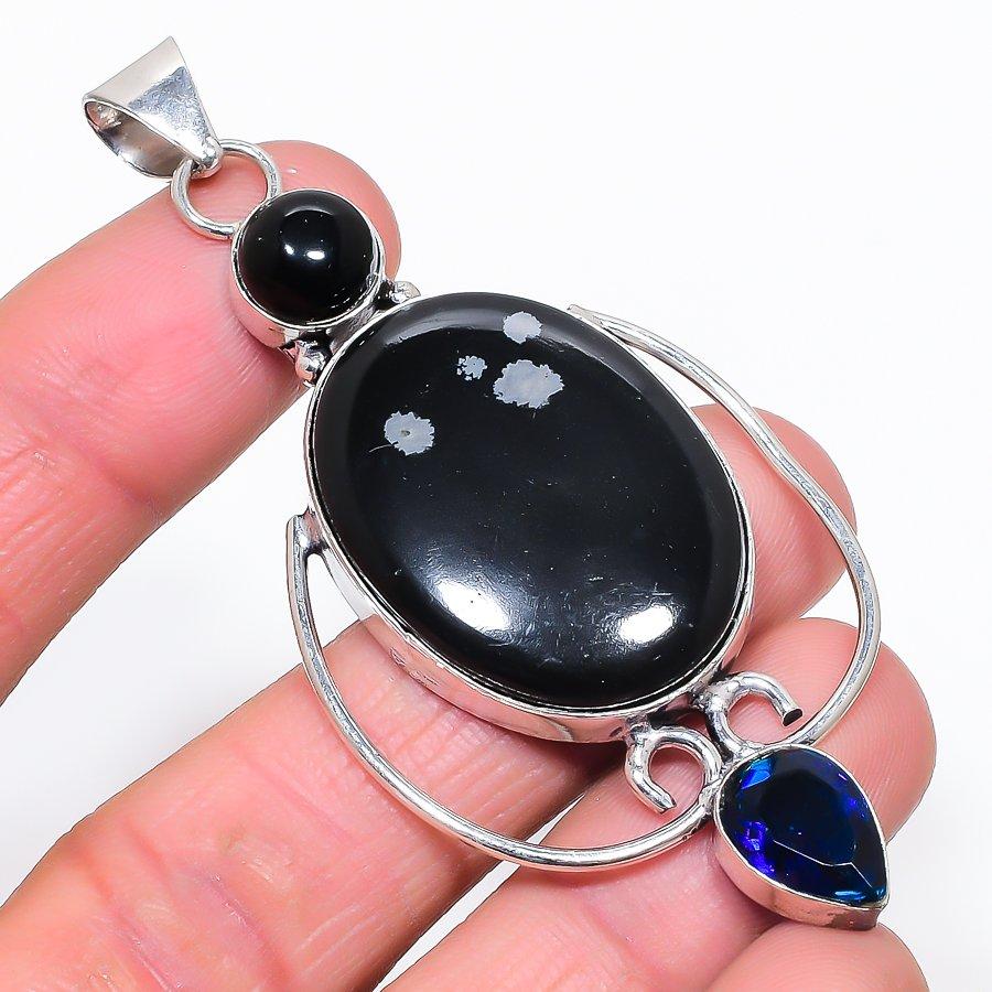 Snowflake Obsidian, Onyx Handmade 925 Sterling Silver Jewelry Pendant 3.15 H0B88 — buy online with free worldwide shipping!