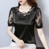 Lace Top Short-sleeved Women's Summer Satin New Versatile Silk Base Shirt Mulberry Silk Loose Shirt — buy online with free worldwide shipping!