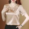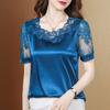 Lace Top Short-sleeved Women's Summer Satin New Versatile Silk Base Shirt Mulberry Silk Loose Shirt