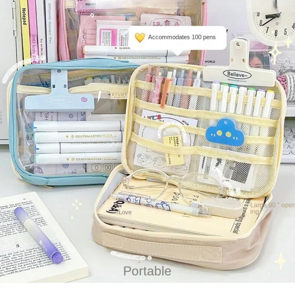 Transparent Storage Bag Multifunction Student Stationery Fashion Pencil Case Cosmetic Organizer