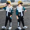 Spring and Autumn Boys Sport Suit Teen Kids Hooded Clothes Casual Zipper Hoodies and Striped Pants Child Tracksuit