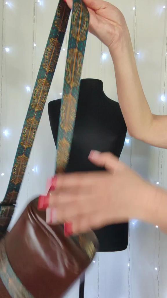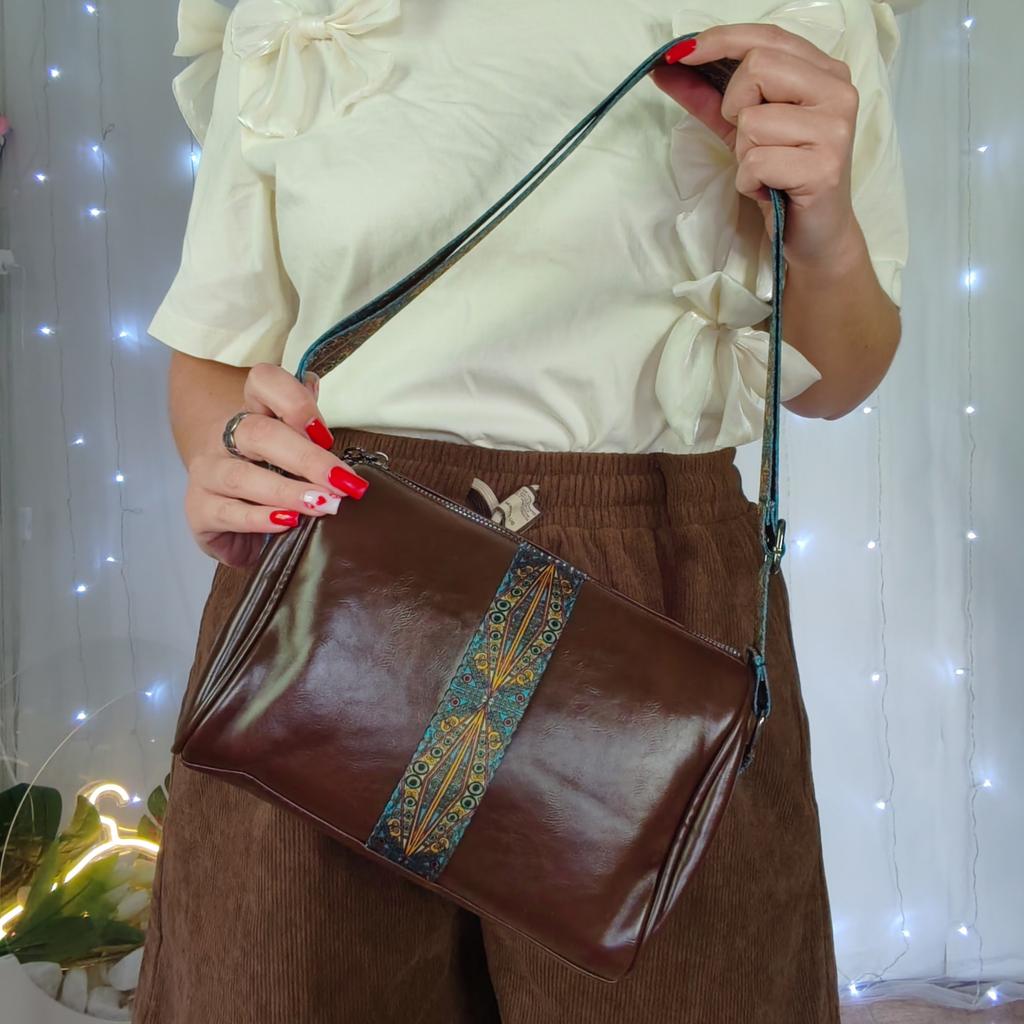 Exquisite Brown Leather Crossbody Bag With Embroidery Unique Strap Bohemian Style Shoulder Bags For Women Ethnic Design Purse — buy online with free worldwide shipping!