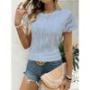 GMXIA Spring Summer Fashion Round Neck Hollow Short Sleeve Round Neck T-shirt Top Woman