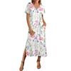 Women's Summer Floral Print Dress Short Sleeve Beach Dress With Pocket Casual V-neck Hem Side Slit Dress