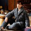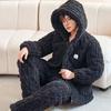 Experience ultimate comfort and warmth during the colder months with this men's winter pajama set, featuring a thick and plush design. The set includes a large-size flannel jacket, complete with a cozy hood to provide extra protection against the chill. Crafted entirely from soft flannel material, both the outer layer and the fluffy inner fur lining ensure a comfortable and snug fit, making it an ideal choice for lounging at home or getting a restful night's sleep.