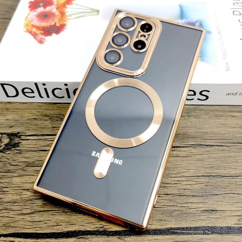 Plating Transparent For Magsafe Case For Samsung Galaxy S25 S24 S23 S22 S21 Ultra Plus S 25 24 23Ultra Mag Safe Glass Lens Cover