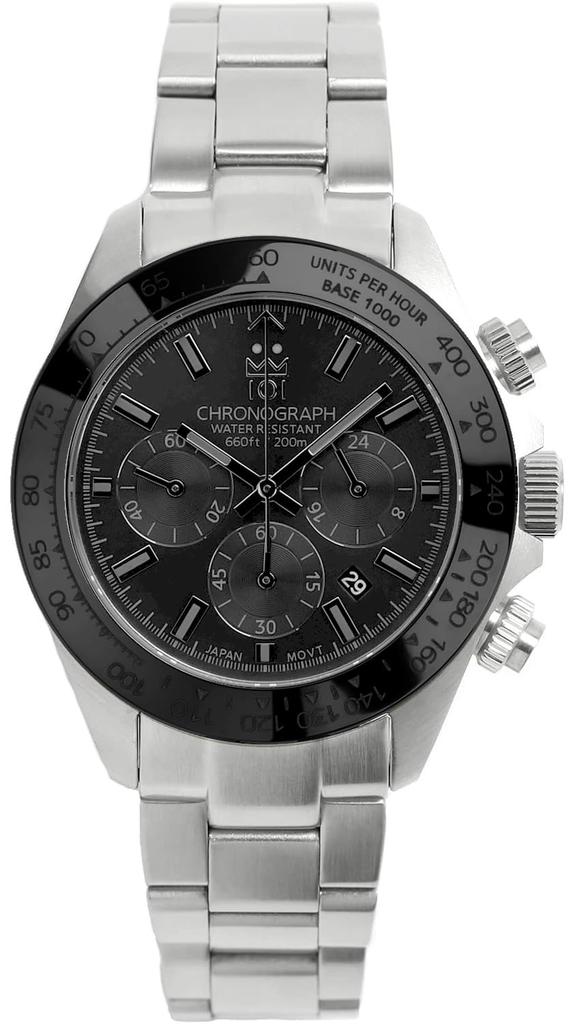 NEW Model Hyakuichi Chronograph Watch Watch 20 ATM Water Resistant Date Quartz Ceramic Bezel Silver Bracelet x Full Black Face SBB [HYAKUICHI 101] — buy online with free worldwide shipping!