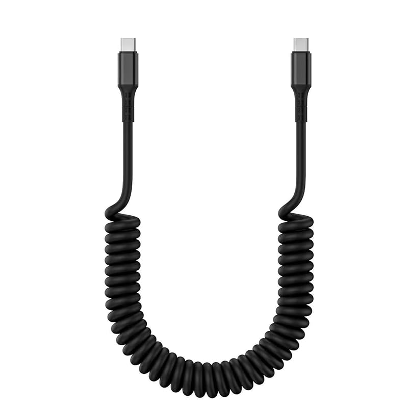 AXYO Type-C To Cable Curl Cord Type PD Compatible 20V 3A 60W Max Fast Charging Data Transfer Approximately 100cm Long Curled Cable Compatible with