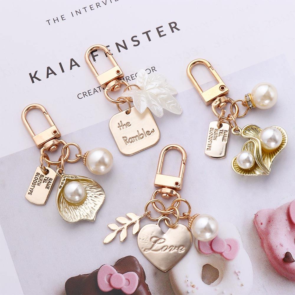 Male Bag Pendant Female Pearl Heart Keychain Women Car Keyring Letter Korean Style Key Lanyard