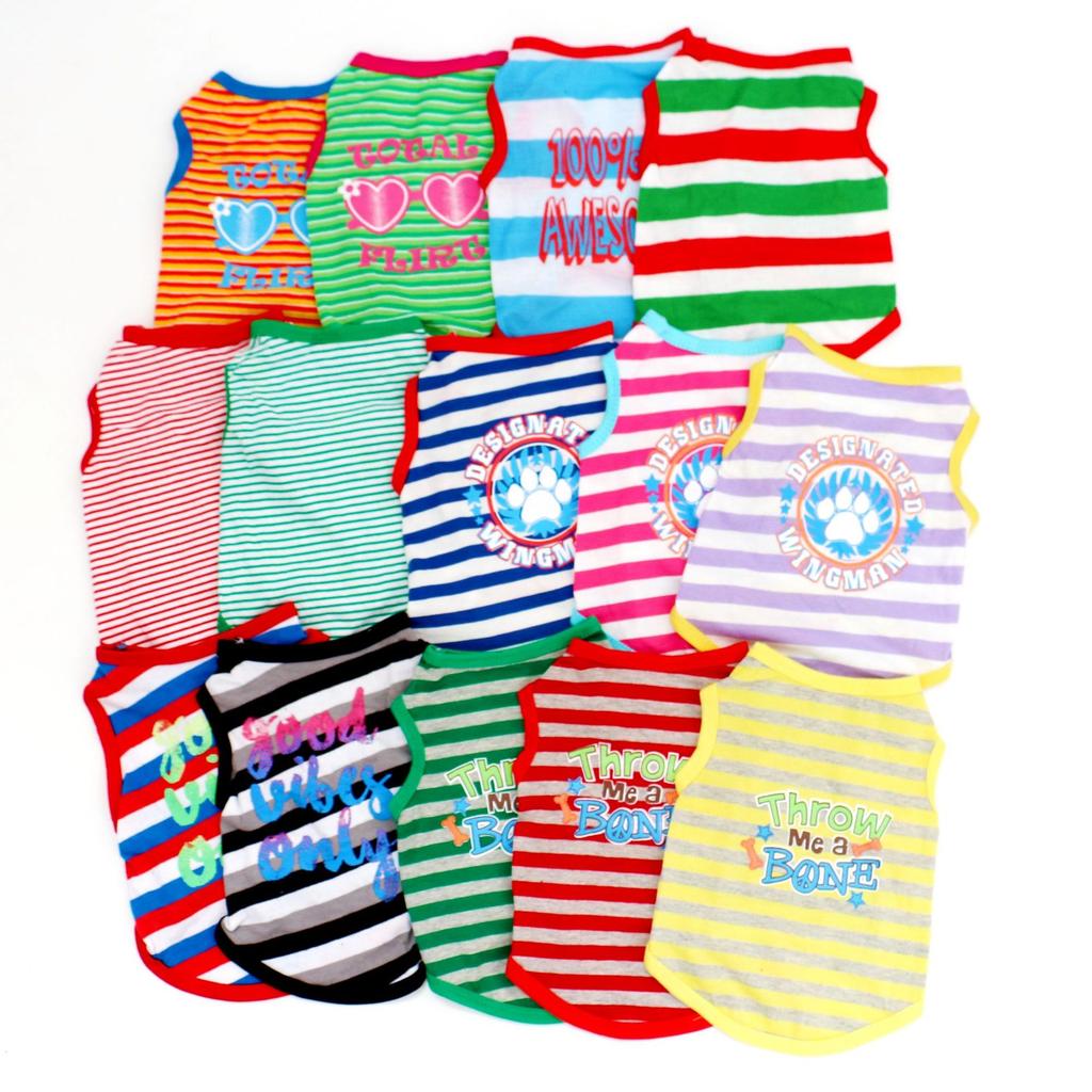 - **Fashionable**: It features various stylish patterns and texts such as stripes, hearts, and cute phrases, making pets look trendy.
