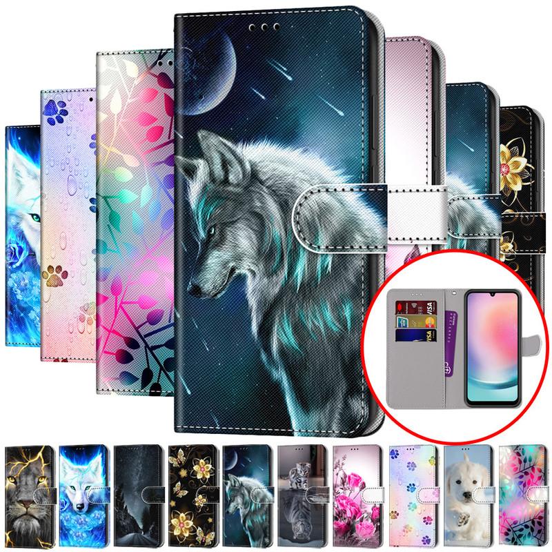 For Redmi Note 14 13 12 Pro Xiaomi 13T 12T Samsung S25 S24 A16 A15 A14 iPhone PU Leather Card Holder Flowers Animals Flip Wallet Kickstand Phone Case — buy online with free worldwide shipping!
