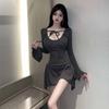 Pure Desire Spice Girl Low-cut Lace-up Waist Slim-fitting Long-sleeved Dress