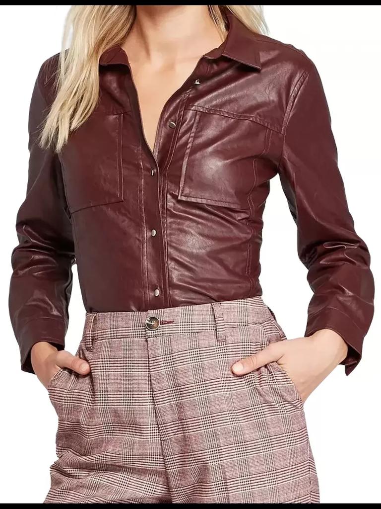 Lambskin Handmade Stylish Casual Party Women Shirt Burgundy Leather Genuine — buy online with free worldwide shipping!