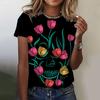 Women's T-Shirt Summer Short Sleeve Casual the Beautiful Flowers Print Top Funny Pattern Pullover T Shirts for Girls Sweater
