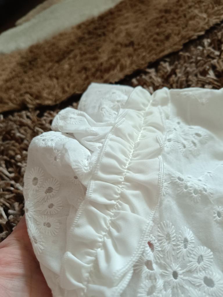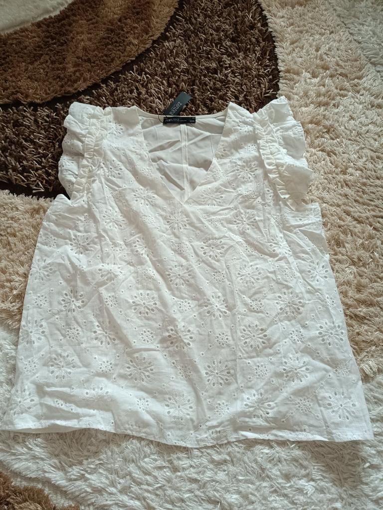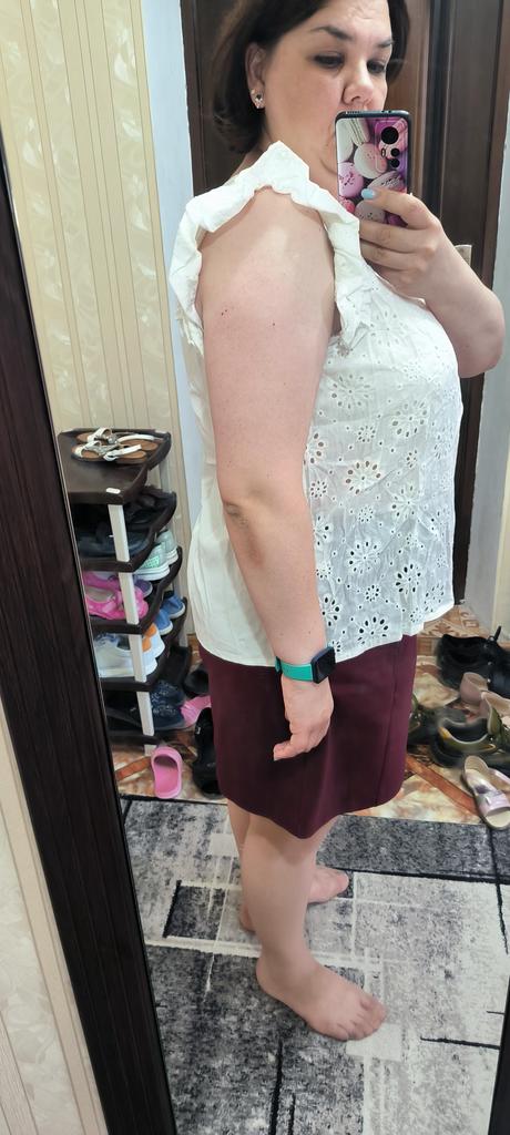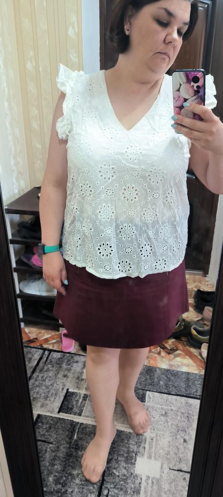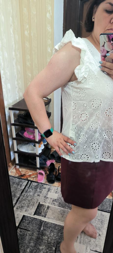 The blouse is pleasant and beautiful. Size M for size 46