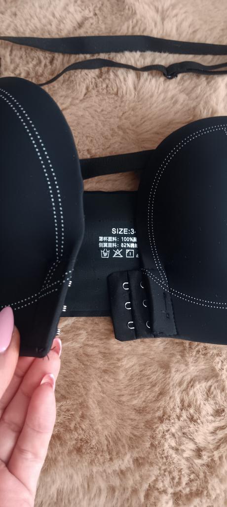 Strapless push-up bra with front closure, with straps.👙 🔆Delivery time 🔆: 18 days to Germany. 🔆Scope of delivery 🔆: The scope of delivery includes a push-up strapless bra in the corresponding size. The product is only available in 3 colors to choose from. It is available in sizes from 70AB to 85AB. I ordered it in size 75AB in black and the bra is perfect for me. The fabric pulls up very well..Normally I wear dress size S(36). I weigh 55kg distributed over 167cm. My measurements are 90-65-90 cm, 167cm tall. When choosing, I followed the manufacturer's size chart. QUALITY 🔆: The bra is of excellent quality, very well made, no unpleasant chemical smell, super soft. I am really positively surprised by the quality of the product.👌👌🥰 Material composition: 86% polyamide, 14% elastane. EXCELLENT QUALITY!👍🚀🚀🚀🚀 ⬆️⬆️⬆️Summary: Beautiful bra that has excellent quality.🧥👍👍👍🔝You have to order it in its original size or even a size smaller. It fits true to size. Thank you Joom and the seller! 5 Stars! 🌟 I am happy to recommend the product!👍🔝🔝🔝🔝✅️👌