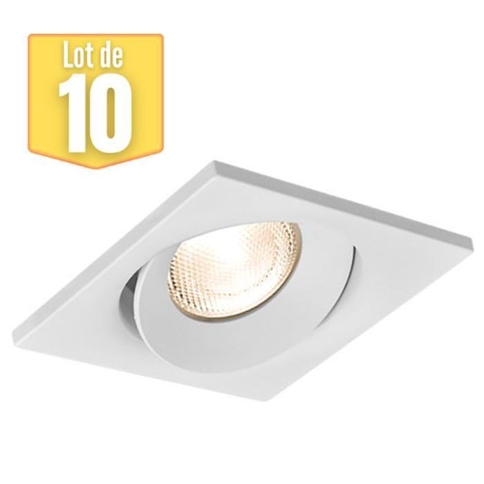 Lot de 10 fixations spots BRAYTRON Tetra-E3, carré, blanc, orientable, longueur et largeur 90mm, aluminium