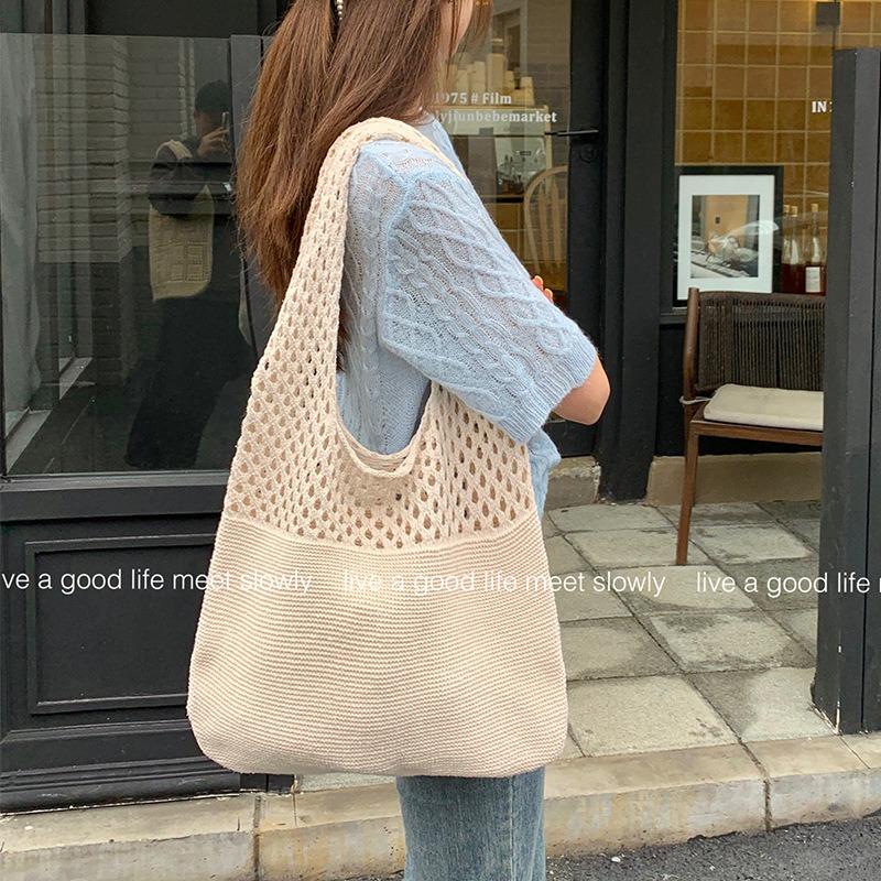 Tote Bag Knit Bag Mesh Hollowed Out Women's Shoulder Bag Woven Bag Handbag