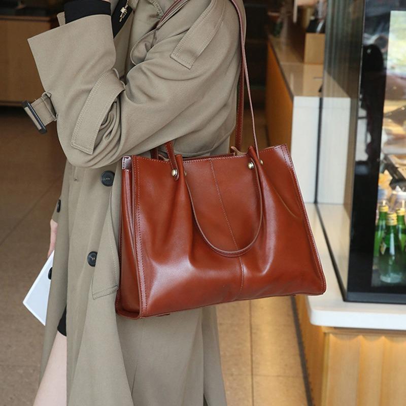 Top Layer Waxed Cowhide Shoulder Handbag Women's All-in-one Autumn/Winter Genuine Leather Underarm Bag Temperament Tote Bag — buy online with free worldwide shipping!