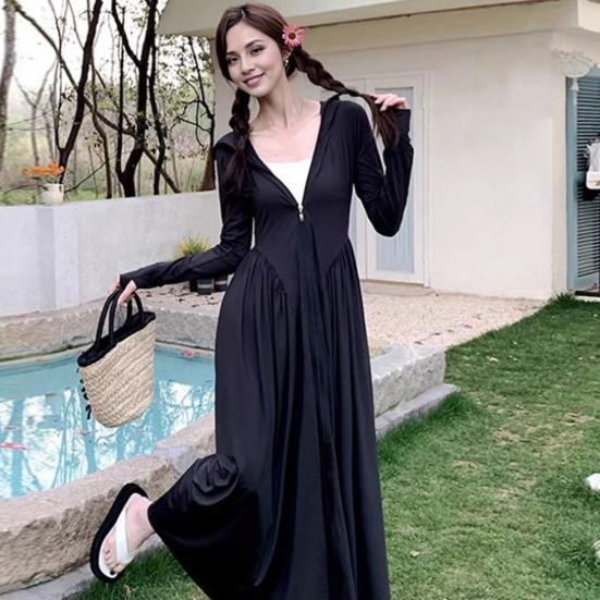 Effortless Style: Featuring a zipper closure for easy wear, this long dress-style jacket effortlessly complements various outfits. Elevate your outdoor look with this fashionable yet functional piece suitable for sports, travel, and summer adventures.