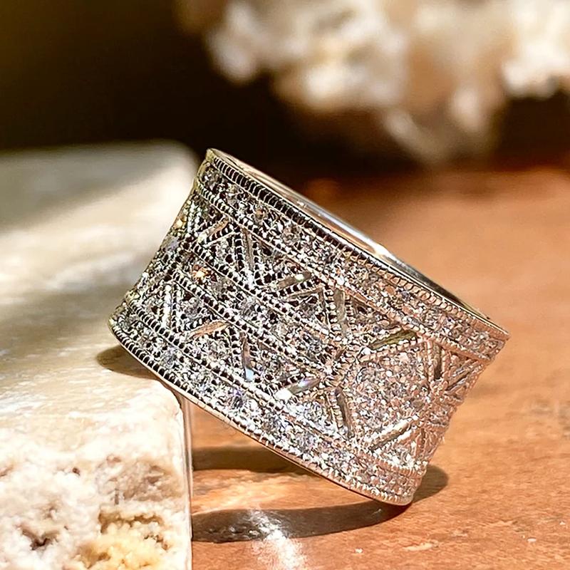 Huitan Newly Designed Women Rings Metal Color Unique Wide Rings Wedding Party Modern Fashion Female Accessories Jewelry — buy online with free worldwide shipping!