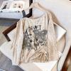 Butterfly Hole Breaking Design Top Long Sleeve Shoulder Leakage Women's T-shirt Korean Fashion Drawstring Lady Pullover — buy online with free worldwide shipping!