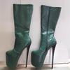 Sexy Women Boots Girls High Heel Boots Pleated Patent Leather Snake Pattern Round Toe Zip Shoes
