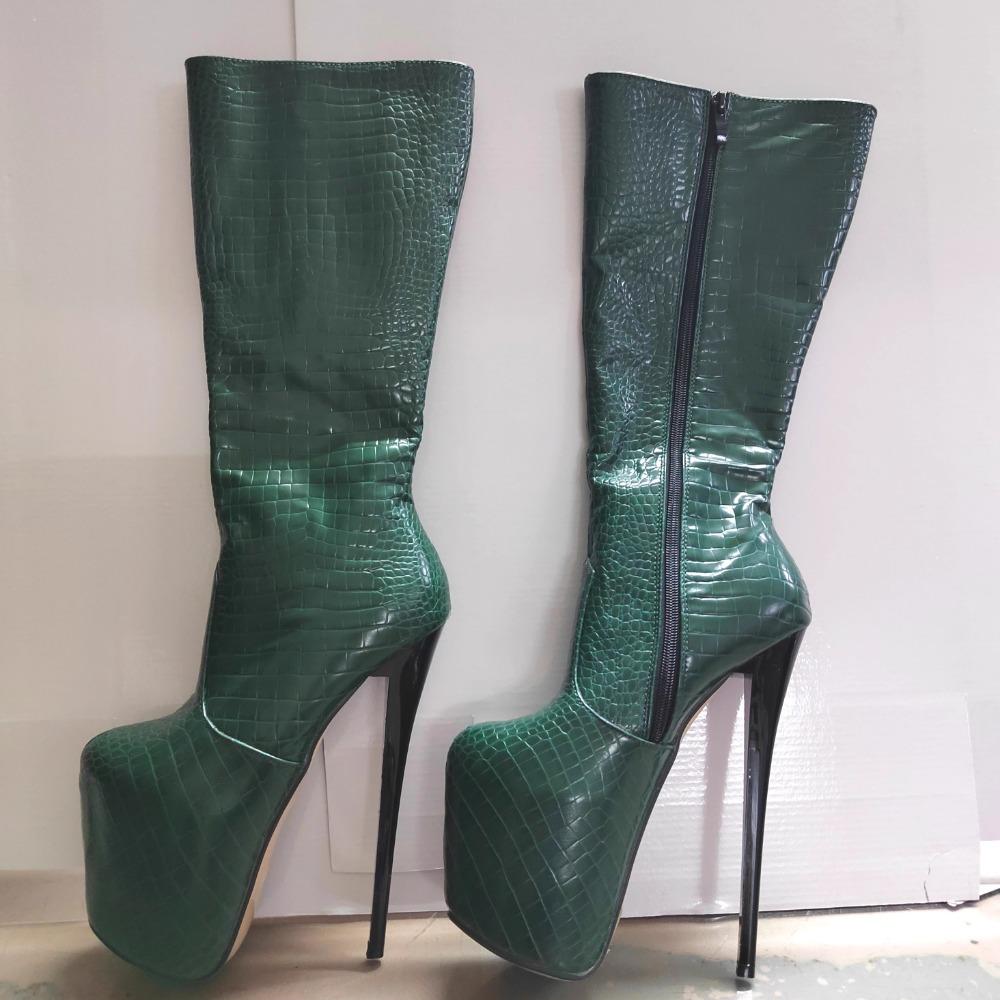 Sexy Women Boots Girls High Heel Boots Pleated Patent Leather Snake Pattern Round Toe Zip Shoes — buy online with free worldwide shipping!