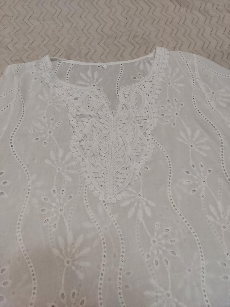 The blouse is sewn from embroidered fabric, natural, pleasant to the body, and also so beautiful. Buy it, girls, you won't regret it. SUPER. My size: bust 94, hips 104. Thank you very much Joom !!!