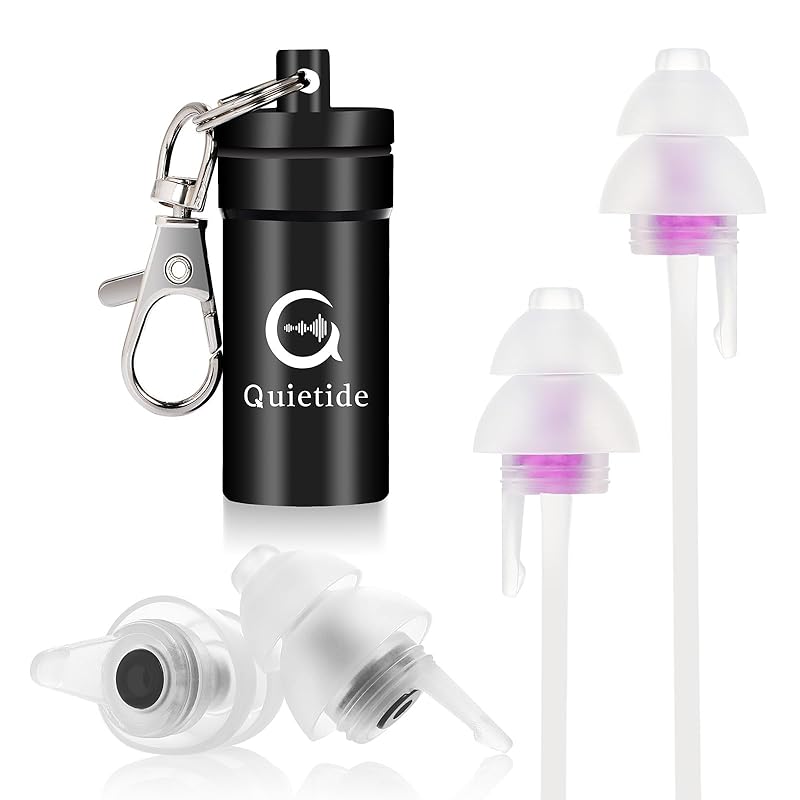 [Reusable & Prevents Loss] ★Unlike disposable types, the Quetide series is a sustainable earplug that is individually wrapped and hygienic.It does not lose its elasticity even after long-term use, and can be washed with water and used repeatedly.★ Preventing loss: ① If you attach the string to the earplugs with a silicone string that won't get tangled, you won't have to worry about the earplugs falling out during live performances.② Listening to customer feedback that earplugs and a string can be stored together, we have increased the number of large plastic cases that can hold one pair of earplugs and a string, or two pairs of earplugs, which is very convenient.③The included aluminum case comes with a key chain and has a compact design that makes it convenient to carry, useful for carrying when traveling, and easy to store.