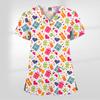 Women Working Uniform Cartoon Animal Print Short Sleeve V-neck T-shirt Tops Femme Blouse Nurse Work Wear Size XXS-6XL — buy online with free worldwide shipping!
