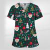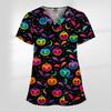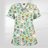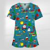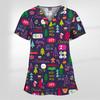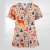 Women Working Uniform Cartoon Animal Print Short Sleeve V-neck T-shirt Tops Femme Blouse Nurse Work Wear Size XXS-6XL